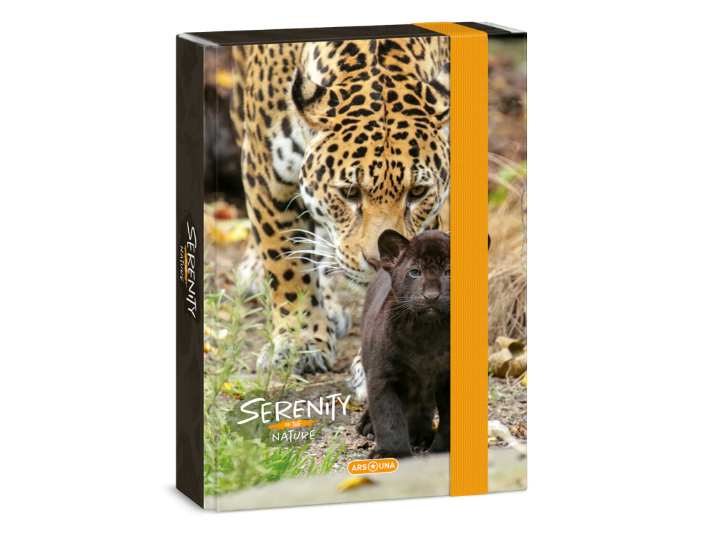 Document box from the Serenity of the Nature - Jaguar collection by Ars Una for storing documents, drawings and notebooks in A5 format. Made of highly resistant, laminated cardboard with a thickness of 7 mm, which protects the placed documents from damage.