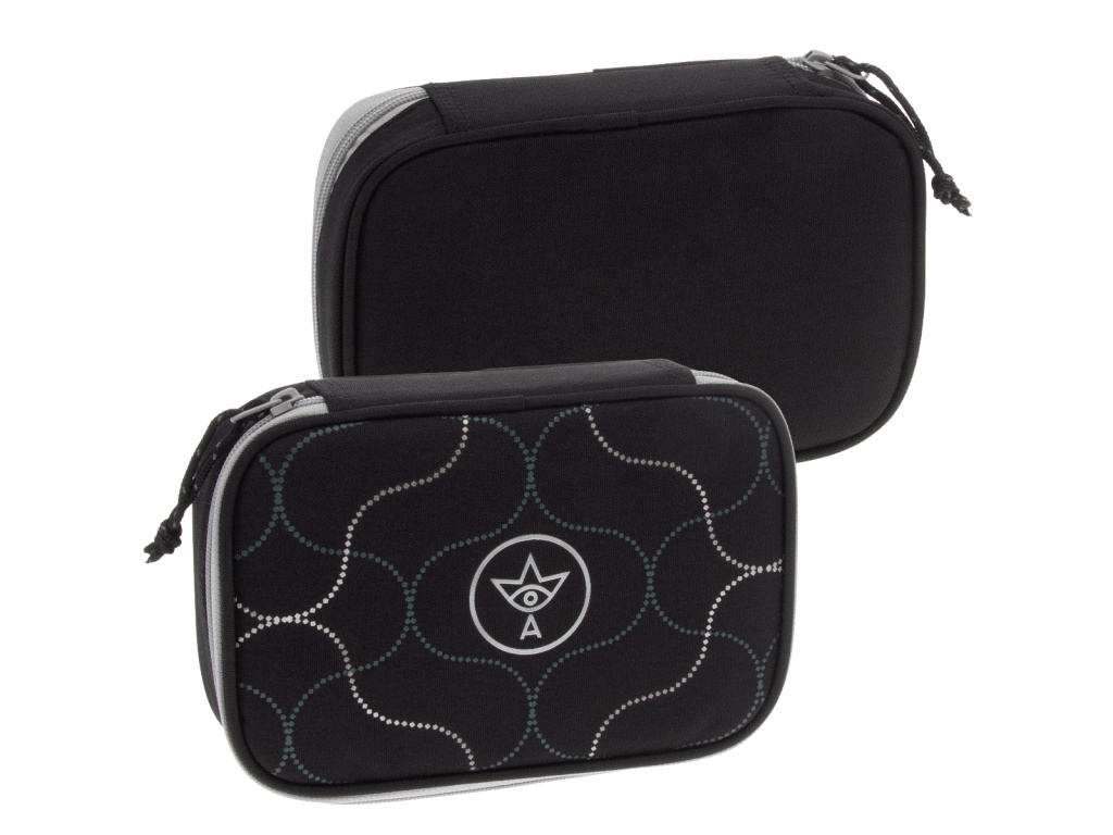 Spacious school pencil case by Ars Una has one zipped pocket and ample storage space inside. The case closes with a zipper with a metal loop.