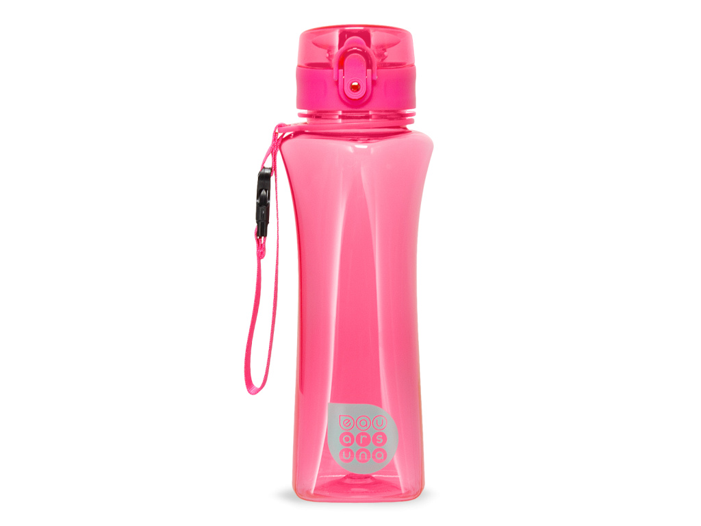 Láhev na pití v hranatějším provedení v jednoduchém a elegantním designu s decentním logem.