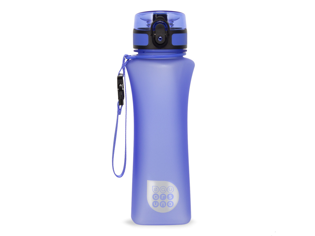 Láhev na pití v hranatějším provedení v jednoduchém a elegantním designu s decentním logem.