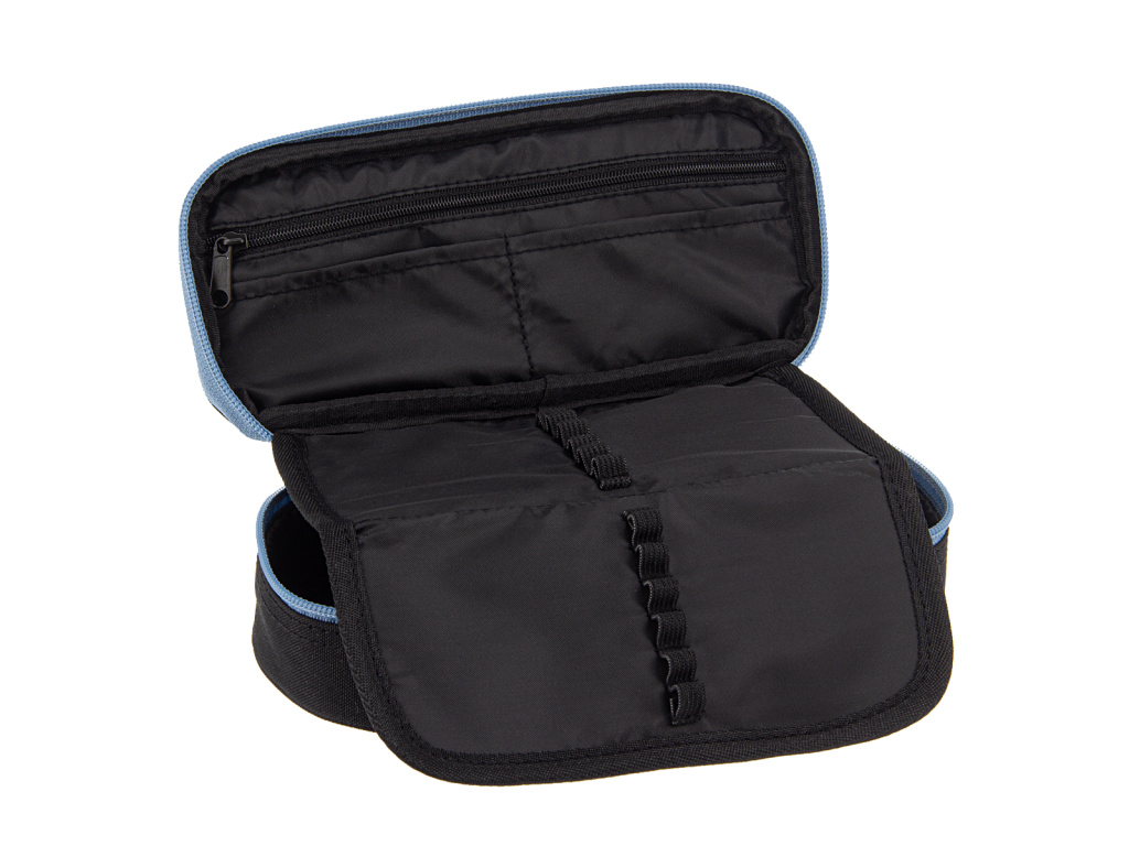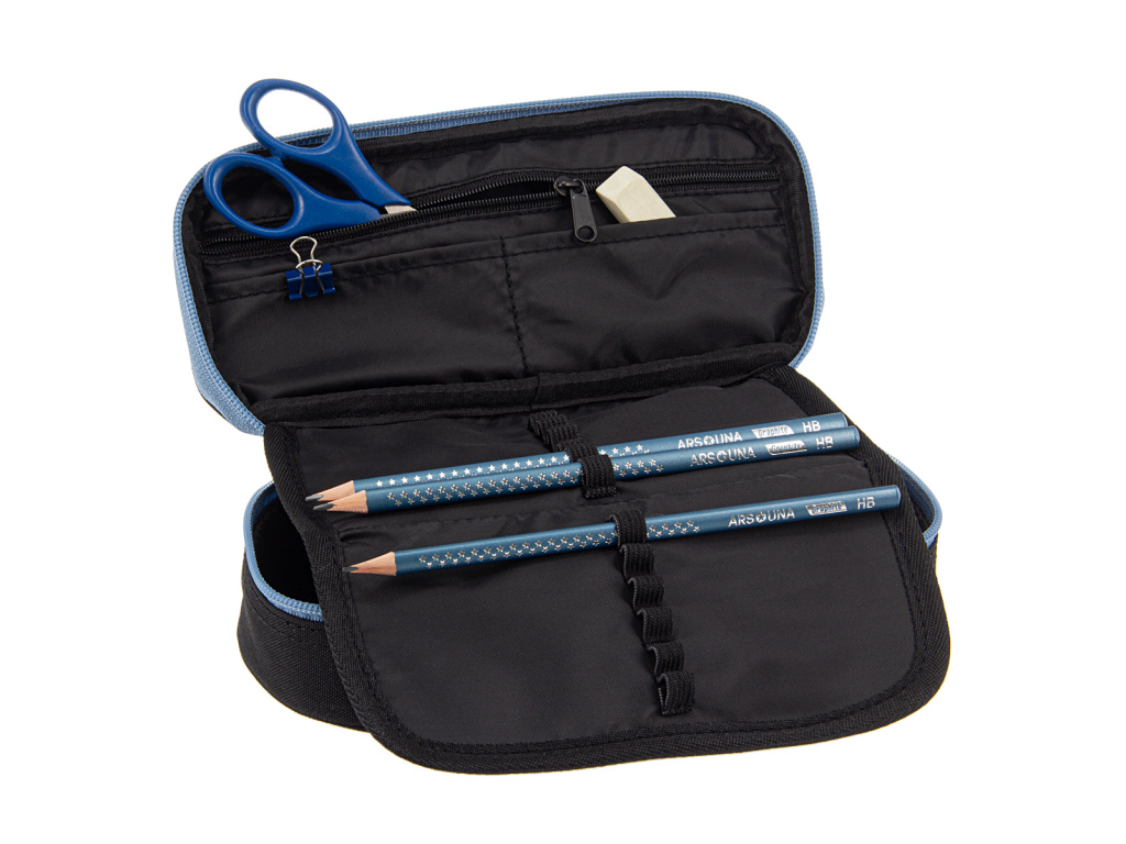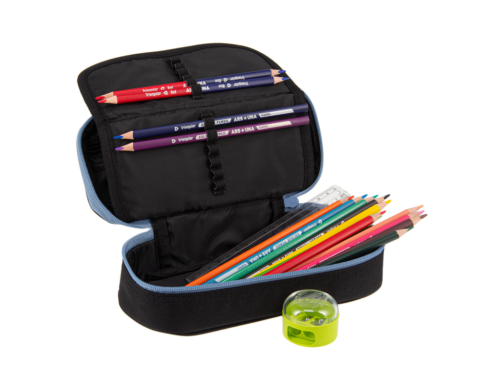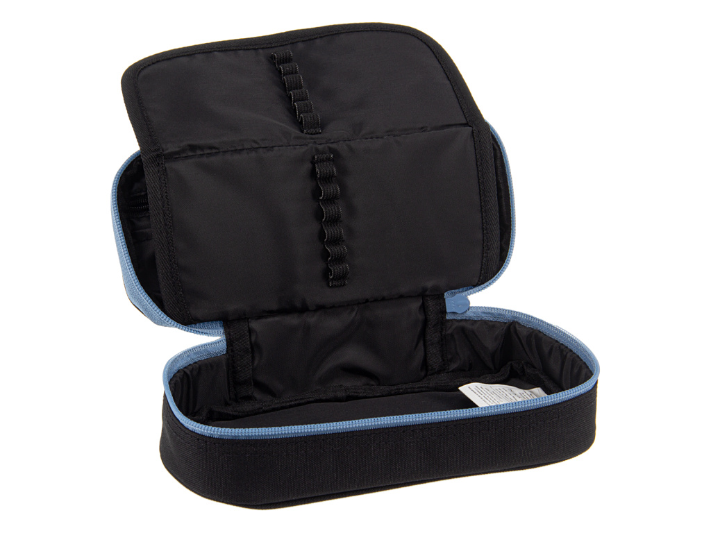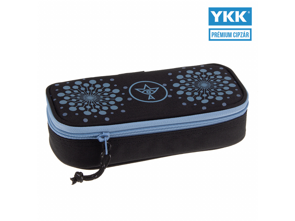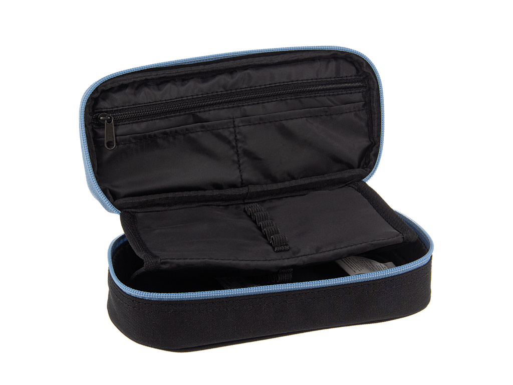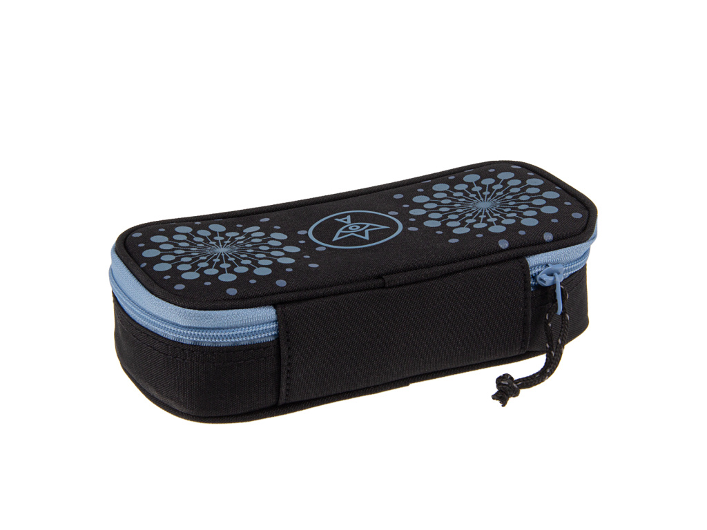 Jednoduchý školní penál oválného typu v minimalistickém designu s výrazným logem.
